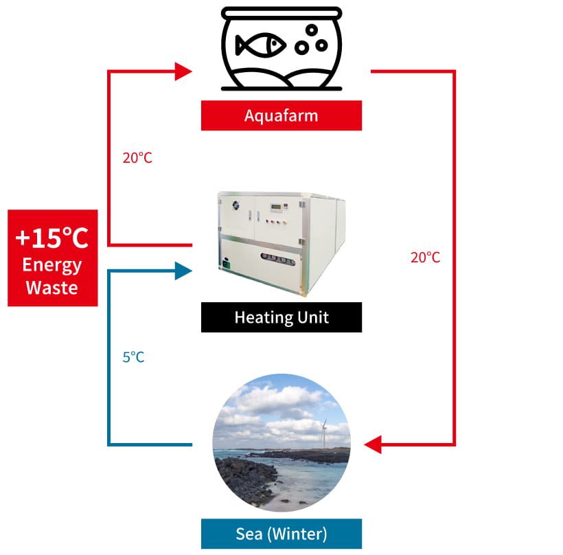 Aquaculture facilities generate unused heat from water treatment, equipment, and processes. The Waste Heat Recovery Unit recovers this waste heat and reuses it as energy for aquaculture operations—without additional power consumption.
